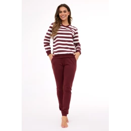 Dámska pyžamová súprava DR 635/468 MOLLY 3 je dokonalou kombináciou pohodlia a módneho dizajnu. Je vyrobená zo 100 % mäkkej, priedušnej bavlny a poskytuje pohodlie a voľnosť pohybu počas celej noci. Blúzka s dlhými rukávmi s elegantnými prúžkami v odtieňoch ecru a hnedej dodáva súprave jemný charakter. Nohavice s dlhými nohavicami majú praktické vrecká a nastaviteľnú šnúrku v páse, ktorá zaručuje dokonalé prispôsobenie. Manžety, spodná časť blúzky a nohavice sú zakončené elastickými manžetami, ktoré zabraňujú vyhrňovaniu látky. Pyžamo bude ideálne na večerné spanie a relaxáciu doma.