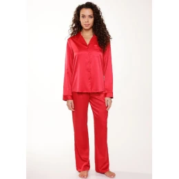 Luxusné pyžamo LingaDore je synonymom pohodlia a elegancie. Pozostáva z dlhých nohavíc a košele s dlhým rukávom, ktoré sú vyrobené z mäkkého saténového materiálu. Košeľu zdobí zapínanie na gombíky a praktické náprsné vrecko s výšivkou LD. Nohavice majú elastický pás a rovné nohavice, čo zaručuje maximálne pohodlie pri nosení. Ideálna voľba pre tých, ktorí ocenia luxusné detaily a kvalitné materiály.