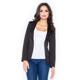 Dámske mäkké sako s dlhým rukávom, dĺžka cez boky. Podšité. Zapínanie na dva gombíky. Na prednom diele našité chlopne - imitácia vreciek.