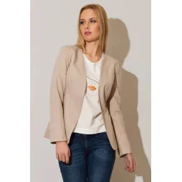 dámska bunda.Elegantné sako klasického strihu. Strih sa od ostatných líši vynechaním goliera a gombíkov. Môžete ju nosiť voľne alebo si ju pripnúť obľúbenou brošňou. Ideálnym doplnkom je košeľa alebo top.