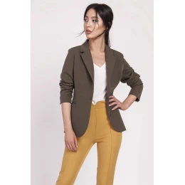 Klasické dámske sako na gombíky. Dlhé rukávy s manžetami, zdobené gombíkmi. Bunda je podšitá.