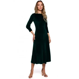 Dámske zamatové midi šaty s volánikovými rukávmi M557 zelená - Moe