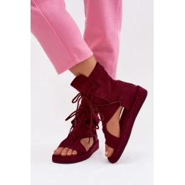 Dámské sandály Eko semiš s vysokým páskem a šněrováním Bordó Ferlisse