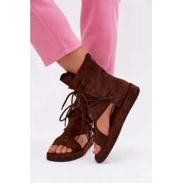 Dámské sandály Eko semiš s vysokým páskem a šněrováním Čokoládové Ferlisse