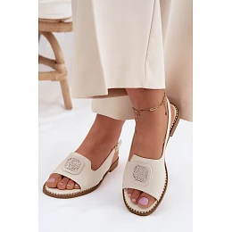 Dámské sandály na nízkém podpatku s ozdobou S.Barski KV61-6016 Krémové