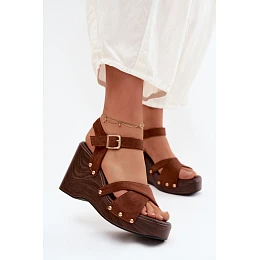 Dámské sandály na platformě se zlatými přezkami Camel Velvra