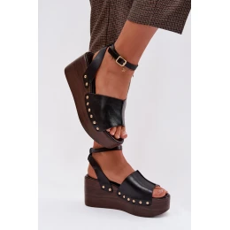 Dámské sandály na platformě se zlatými přezkami Černé Galorina