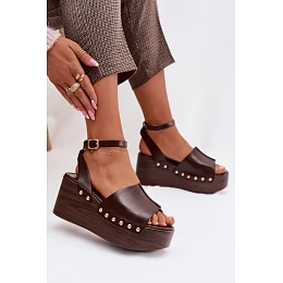 Dámské sandály na platformě se zlatými sponami čokoládové Galorina