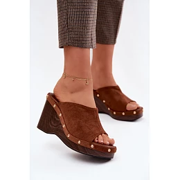 Stylové dámské pantofle vyrobené z eko semiše. Podpatek zajišťuje stabilitu a pohodlí při nošení, zároveň jemně zeštíhluje postavu. Zlaté nýty na bocích tvoří výrazný detail. Tento model se skvěle hodí do letních outfitů – jak s šaty, tak s každodenními kombinacemi. Ideální volba pro ženy, které ocení pohodlí spojené s výrazným, stylovým akcentem. Při výběru velikosti se řiďte tabulkou velikostí.