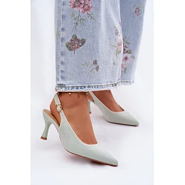 Dámské sandály z eko semiše jsou elegantní volbou pro ženy, které ocení styl a ženský charakter. Model se vyznačuje špičatými nosky, které opticky zeštíhlují nohu. Vrchní část je zakončena eko koženou lemovkou, která zdůrazňuje estetiku obuvi a dodává jí dokonalý vzhled. Tenký podpatek typu jehla krásně tvaruje siluetu, prodlužuje nohy a dodává lehkost každému outfitu. Zapínání na přezku s nastavitelným páskem umožňuje perfektní přizpůsobení noze a zajišťuje pohodlí při nošení. Ideální volba na elegantní vycházky, slavnostní příležitosti a večerní události. Při výběru velikosti se řiďte tabulkou velikostí.