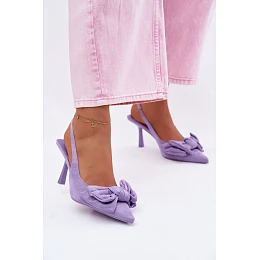 Dámské sandály na podpatku s mašlí fialové Petrella
