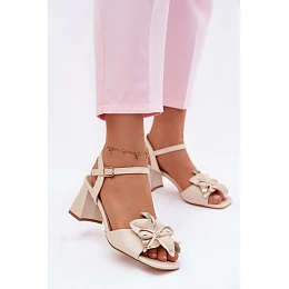 Dámské sandály na podpatku s ozdobným květem Vinceza 20283 Béžové