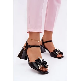 Dámské sandály na podpatku s ozdobným květem Vinceza 20283 Černé
