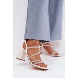 Dámské sandály na podpatku s pásky a kamínky Bílá Brelia