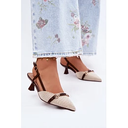 Dámské sandály na podpatku s špičatými nosy hnědo-bežové Felessa