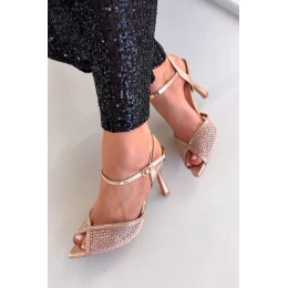 Dámské sandály na podpatku se zdobením šampaňské Peloria