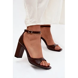 Dámské sandály na podpatku z umělé kůže čokoládové Melvra
