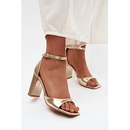 Dámské sandály na podpatku z umělé kůže zlaté Melvra