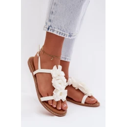 Dámské sandály Ploché S Dekorativními Květinami Bílé Noemia