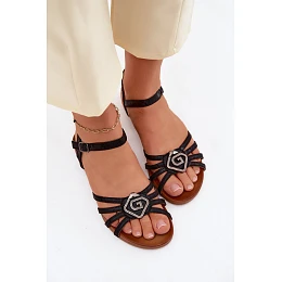 Dámské sandály Ploché s pásky a ozdobou S.Barski KV61-6056 Černé