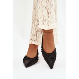Stylové dámské sandály vyrobené z efektního pleteného materiálu. Nízký blokový podpatek zajišťuje stabilitu a pohodlí při nošení, ideální pro každodenní použití. Zakryté, špičaté špičky dodávají modelu ženský charakter. Sandály skvěle doplní letní stylizace i elegantnější outfity. Ideální volba pro ženy, které ocení pohodlí, módní vzhled a jemné detaily. Při výběru velikosti se řiďte tabulkou velikostí.