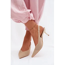 Dámské sandály z síťoviny na podpatku Béžové Emiliana