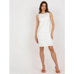 Koktejlové šaty v ecru farbe s okrúhlym výstrihom.