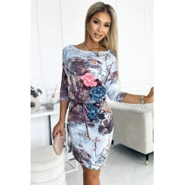 Športové šaty 13-155 Numoco - okrúhly výstrih - trojštvrťové rukávy - šaty majú voľnejší strih - v páse je v tunelíku vložená širšia gumička a šnúrka so striebornými korálkami