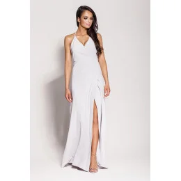 Spoločenské a plesové šaty krajkové dlhé luxusné značkové CHARM'S Paris sivé - Šedá / XS - CHARM'S Paris