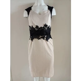 Dámske krátke šaty bez rukávov, v páse čierna vsadka vpredu s našitou veľkou luxusnou čipkou.