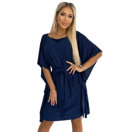 Dámske šaty 287-25 SOFIA NUMOCO - tmavomodré - voľný strih "butterfly" - trojštvrťové rukávy - zaväzovanie v páse - dĺžka po kolená