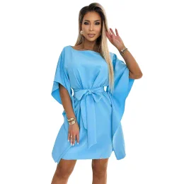 Dámske šaty 287-26 SOFIA NUMOCO - modré - voľný strih "butterfly" - trojštvrťové rukávy - zaväzovanie v páse - dĺžka po kolená