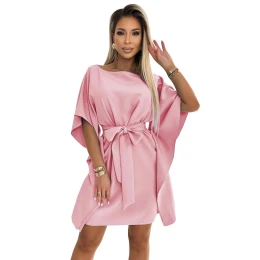 Dámske šaty 287-32 SOFIA NUMOCO - staroružové - voľný strih "motýľ" - trojštvrťové rukávy - zaväzovanie v páse - dĺžka po kolená