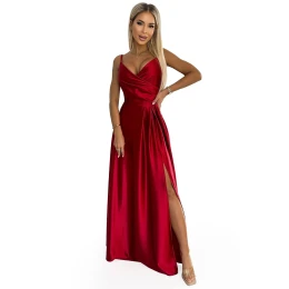 Dámske šaty 299-14 CHIARA NUMOCO - červená farba - s tenkými ramienkami - vyprofilovaný dekolt - maxi sukňa s rázporkom
