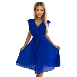 Dámske šaty 374-4 POLINA Numoco - elegantné dámske šaty - bez rukávov - ramená ozdobené volánikmi - prekrížený výstrih - v páse na opasok - rozšírená šifónová sukňa
