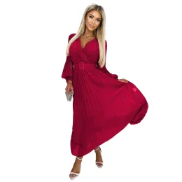 Dámske šaty 414-9 KLARA Numoco basic - bordová farba - šifónové pruhované šaty - krížový výstrih - dlhé rukávy