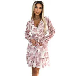 Dámske šaty 514-1 Numoco basic - zo vzdušného šifónového materiálu - s kvetinovým vzorom - dlhé rukávy - výstrih - opasok Zloženie materiálu: 100% polyester