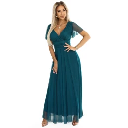 Dámske šaty 562-4 NASTIA Numoco basic - zelené - vyrobené z tylu - vzdušné a ľahké - srdiečkový výstrih - krátke rukávy - vystužené košíčky - zaväzovanie v páse