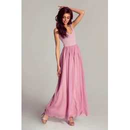Spoločenské dámske šaty na ramienka krajkové s kolovou sukňou ružové - Ružová / L - Sherri