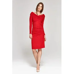 Dámske spoločenské šaty FOLD so skladmi a opaskom stredne dlhé červené - Červená - Numoco