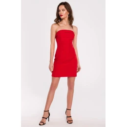 Dámske spoločenské šaty FOLD so skladmi a opaskom stredne dlhé červené - Červená - Numoco