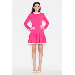 Dámske spoločenské šaty s golierom, stužkou a krátkym rukávom dlhé - Ružová / M - Lemoniade