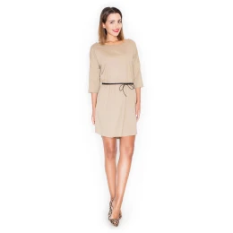 Dámske značkové šaty Lental DANUTA s 3/4 rukávom stredne dlhé béžovej - Béžová - Lental