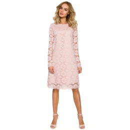 Spoločenské šaty luxusné s kolovou sukňou stredne dlhé svetlo ružová - Ružová / XL - Numoco