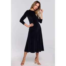 Tento nádherný kúsok vám bude kryť chrbát pri všetkých príležitostiach na konci roka. Vďaka priliehavému strihu a jemne nariaseným rukávom sú veľmi ženské a elegantné. DETAILY PRODUKTU: úpletový materiál - zamat priliehavé midi šaty so 7/8 sukňou v tvare písmena A dlhé rukávy s nariasenými detailmi skrytý bočný zips bez podšívky Naša modelka meria 171 cm a nosí veľkosť S