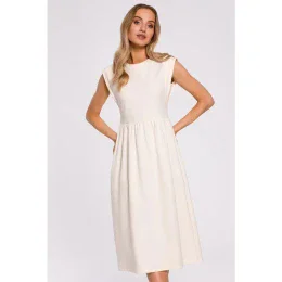 Veľmi pohodlné pletené midi šaty s vysokým pásom a voľnou sukňou opticky zužujú pás a vďaka rovnému strihu tiež zoštíhľujú celú postavu. Tieto krásne šaty majú charakteristické, veľmi krátke rukávy a priliehavý výstrih. Skvele sa hodí na každodenný aj formálny štýl.