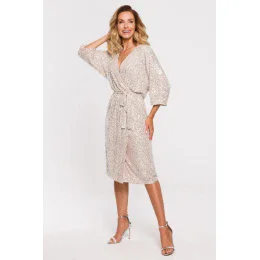 Zažiarite ako diamant! V našich flitrových šatách v strednej dĺžke budete žiariť nocou. Má úžasný véčkový výstrih, dlhé rukávy a zavinovací dizajn s pásikom na zaviazanie v páse.