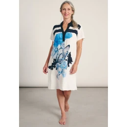 Dámske plážové šaty značky Muydemi, vyrobené zo 100 % viskózy, ideálne na horúce letné dni. Šaty sú voľné, jednoduchého strihu, s dĺžkou nad kolená. Šaty majú krátke rukávy a výstrih do V.