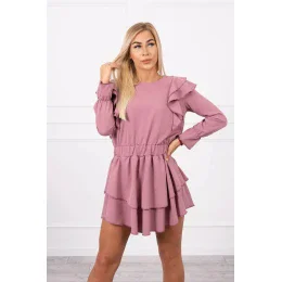 Dámske šaty s vertikálnymi volánmi 16095 tmavo ružové - Kesi
