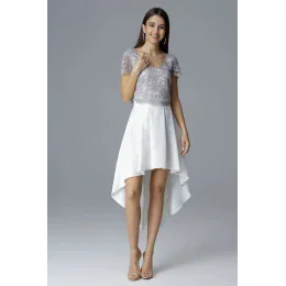 Spoločenské šaty MAYAADI Deluxe krajkové s asymetrickou sukňou krémové - Béžová - MAYAADI